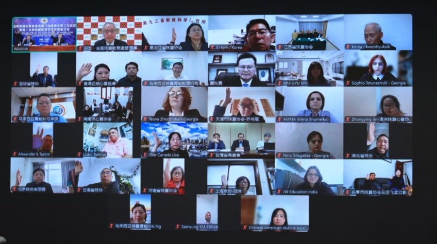 2026年4月16日,世界珠算心算联合会(以下简称世珠联)第六届理事会第三次会议暨第十次珠心算教育学术交流研讨会以线下与线上结合的形式召开。世珠联第六届理事会会长、中国珠算心算协会会长欧文汉,世珠联副会长出席会议,秘书长程北平(中国)主持会议。